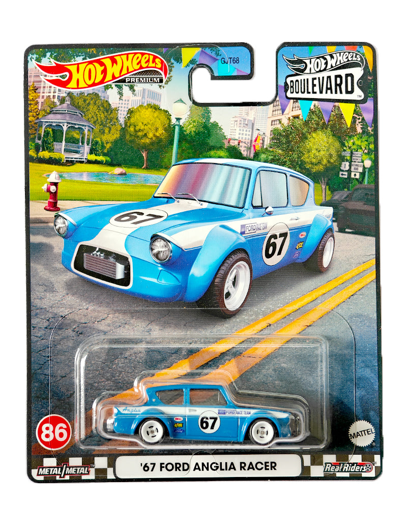 EXCLUSIVES Hot Wheels Boulevard '67 Ford Anglia Racer - Blue / White - 2020 Card (With Protector Case)