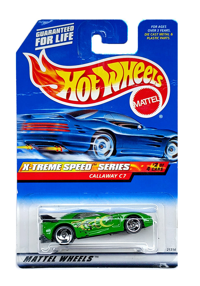 EXCLUSIVES Hot Wheels Callaway C7 - Green / Black - 1998 Card (Creased Card / Car in Excellent Condition) (With Protector Case)