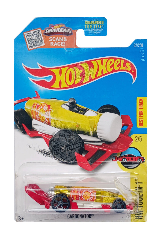 EXCLUSIVES Hot Wheels Carbonator - Red / Yellow - 2015 Card (With Protector Case)