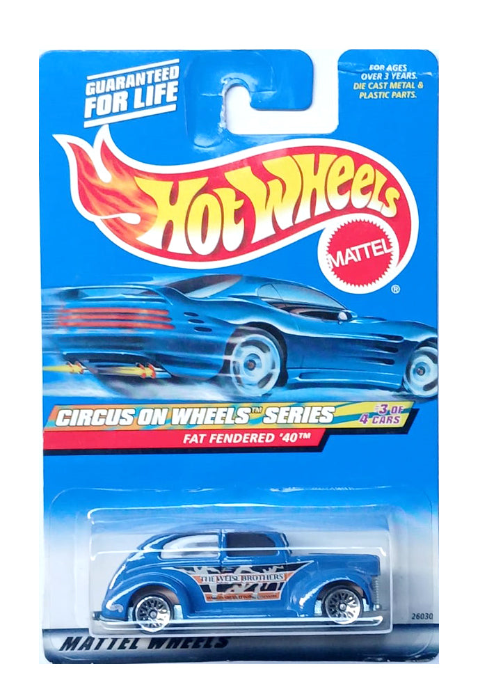 EXCLUSIVES Hot Wheels Circus on Wheels Series Fat Fendered - Blue - 1999 Card (Creased Card / Car in Excellent Condition) (With Protector Case)