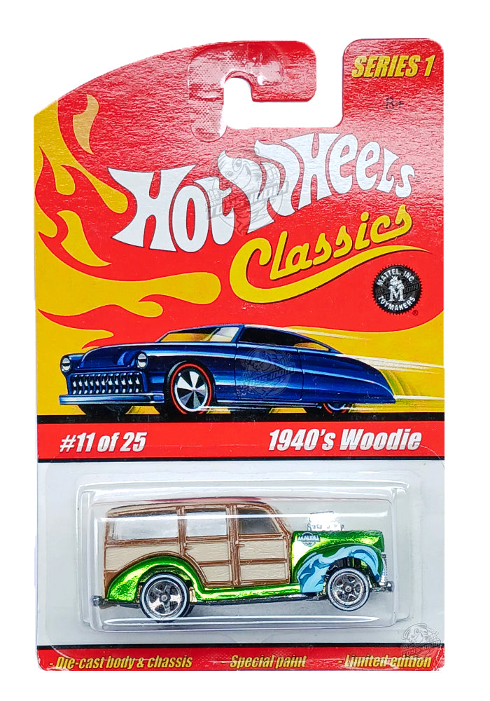 EXCLUSIVES Hot Wheels Classics Series 1 1940's Woodie - Brown / Green - 2004 Card (With Protector Case)
