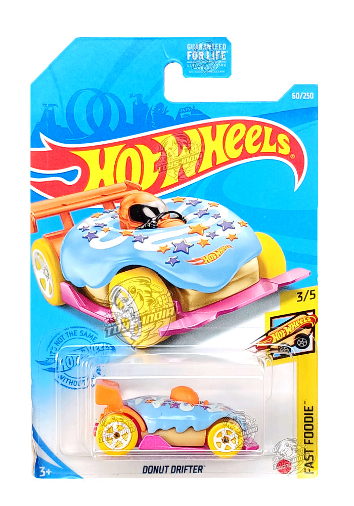 EXCLUSIVES Hot Wheels Donut Drifter - Blue / Orange - 2020 Card (With Protector Case)