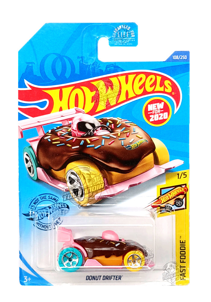 EXCLUSIVES Hot Wheels Donut Drifter - Brown / Pink - 2017 Card (With Protector Case)