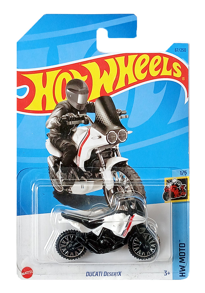 EXCLUSIVES Hot Wheels Ducati DesertX - White / Black - 2021 Card (With Protector Case)