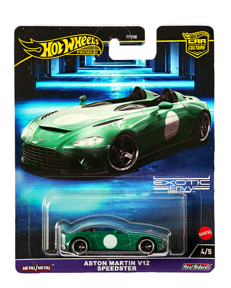 EXCLUSIVES Hot Wheels Exotic Envy Aston Martin V12 Speedster - Green - 2022 Card (With Protector Case)