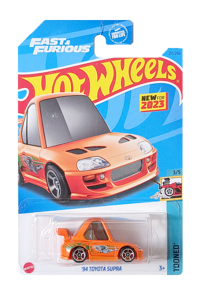 EXCLUSIVES Hot Wheels Fast & Furious Tooned '94 Toyota Supra - Orange - 2021 Card (With Protector Case)