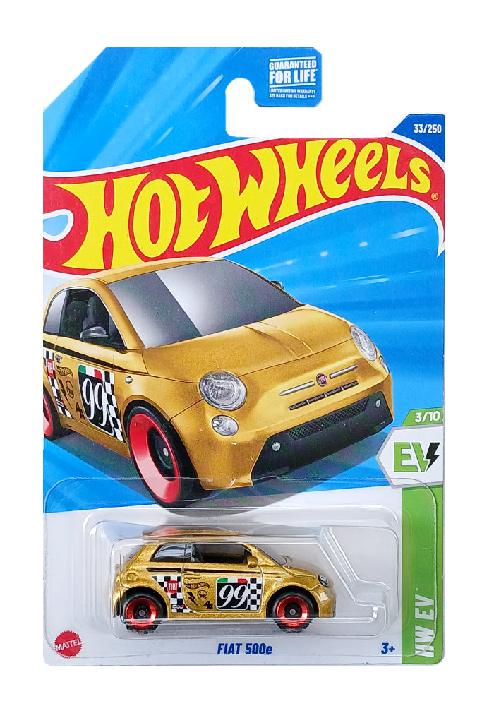 EXCLUSIVES Hot Wheels Fiat 500e - Golden - 2024 Card (With Protector Case)