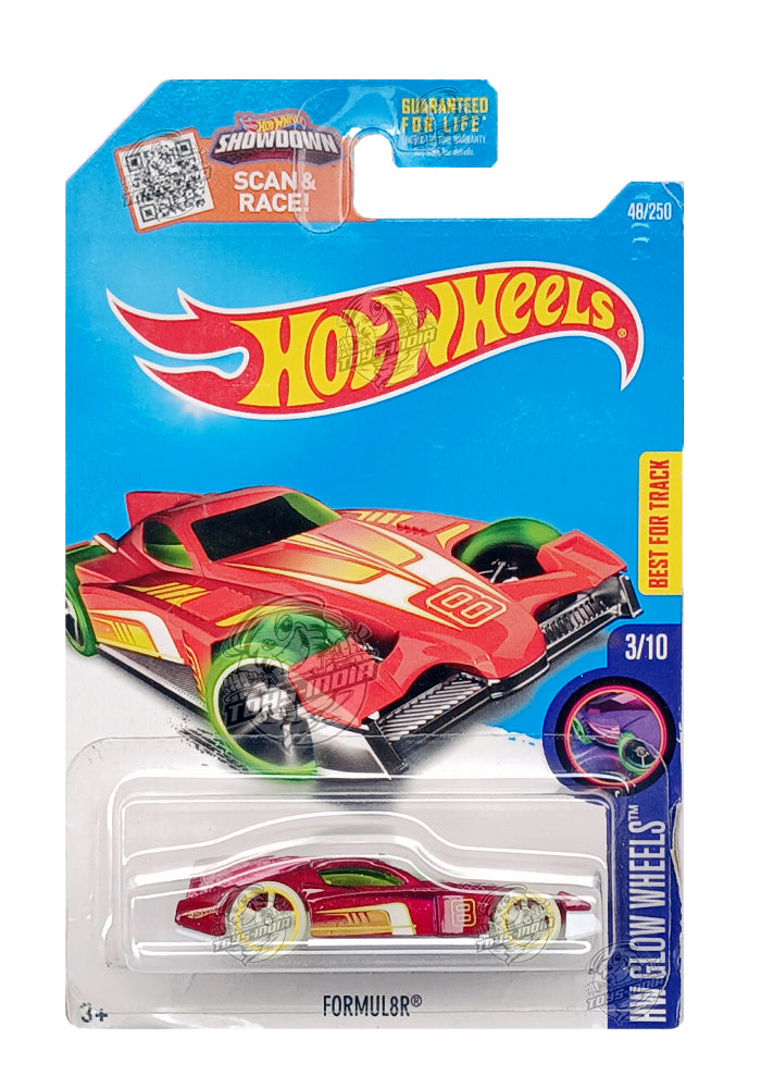 EXCLUSIVES Hot Wheels Formul8r - Red / Yellow - 2015 Card (With Protector Case)