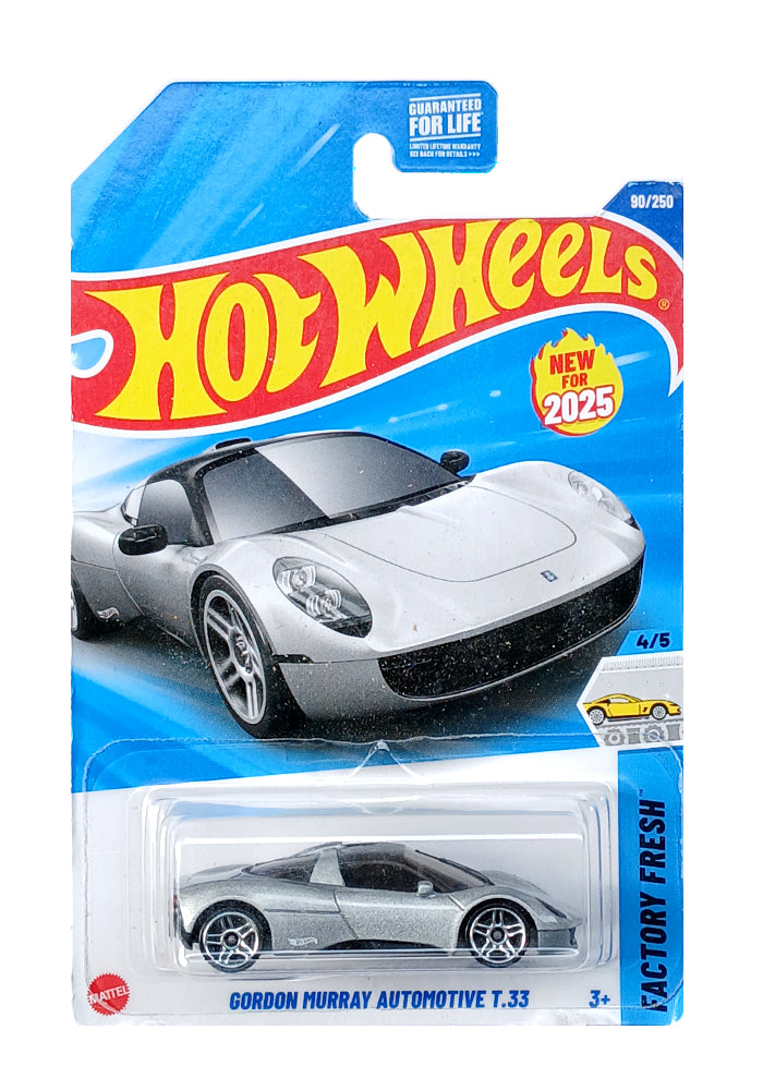 EXCLUSIVES Hot Wheels Gordon Murray Automotive T.33 - Silver - 2024 Card (Card Damage / Car in Excellent Condition) (With Protector Case)