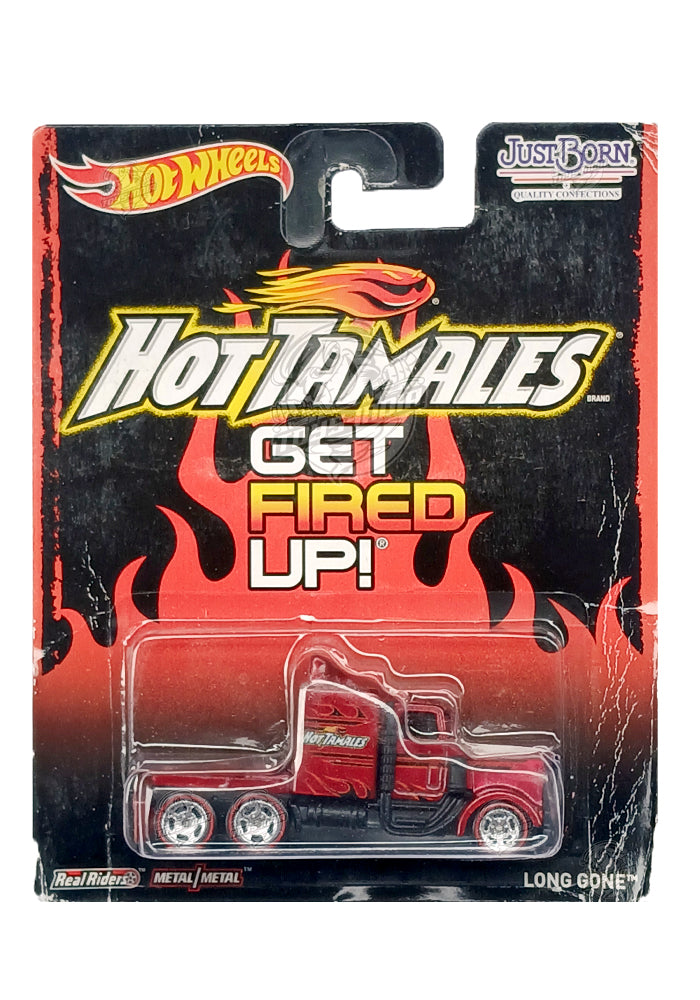 EXCLUSIVES Hot Wheels Hot Tamales Long Gone - Red / Black - 2013 Card (Creased Card / Car in Excellent Condition) (With Protector Case)