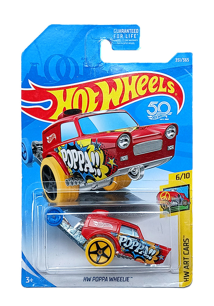 EXCLUSIVES Hot Wheels HW Poppa Wheelie - Red - 2017 Card (With Protector Case)