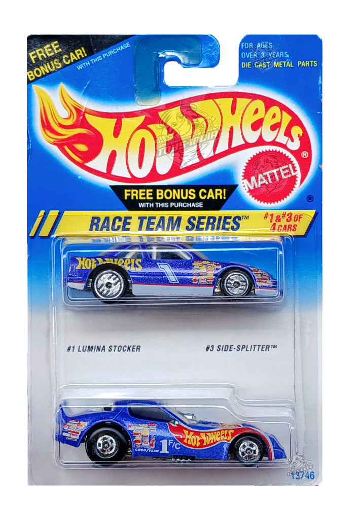 EXCLUSIVES Hot Wheels Lumina Stocker & Side-Splitter - Blue - 1994 Card (2-Pack) (Creased Card / Car in Excellent Condition)
