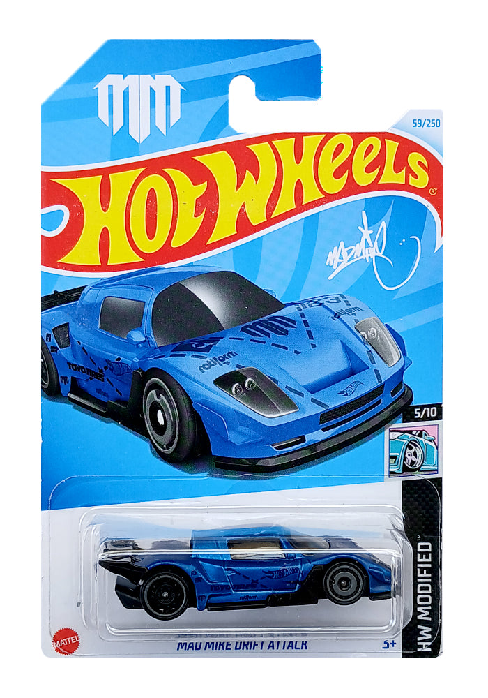 EXCLUSIVES Hot Wheels Mad Mike Drift Attack - Blue - 2021 Card (With Protector Case)