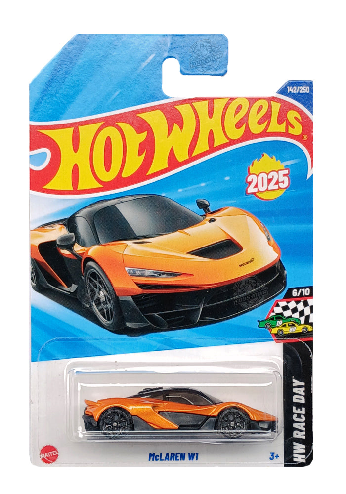 EXCLUSIVES Hot Wheels McLaren W1 - Orange - 2024 Card (Blister Damage / Car in Excellent Condition) (With Protector Case)