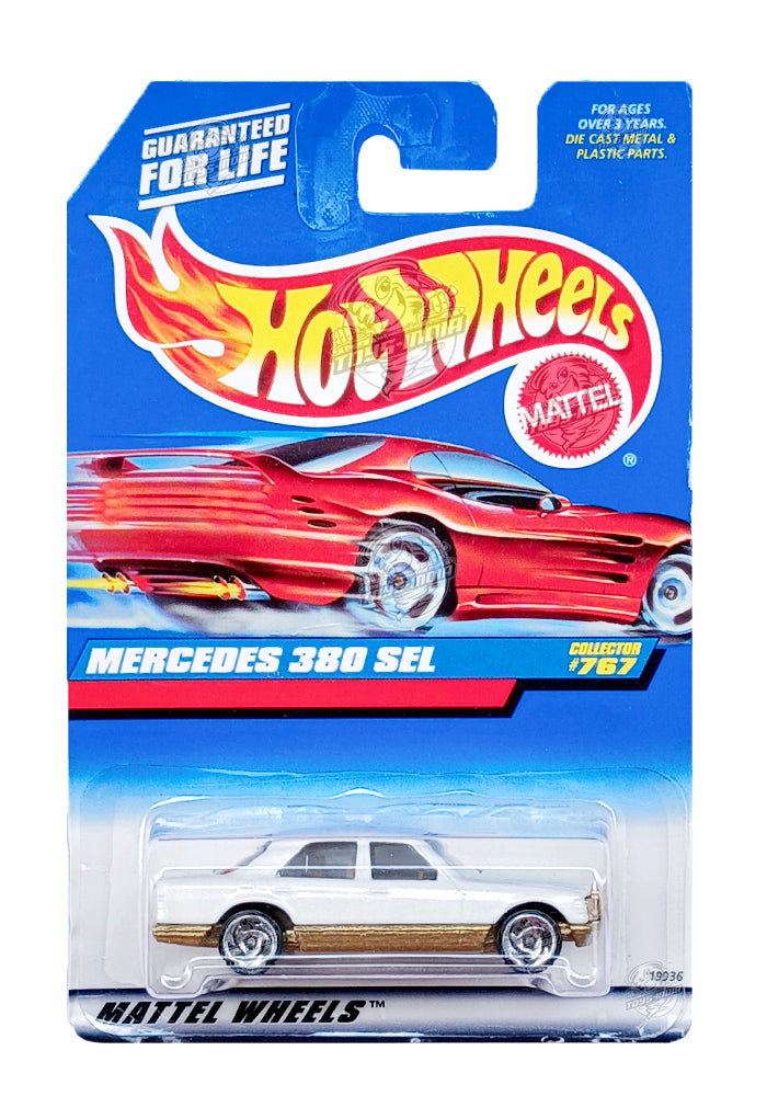 EXCLUSIVES Hot Wheels Mercedes 380 Sel - White / Golden - 1997 Card (With Protector Case)