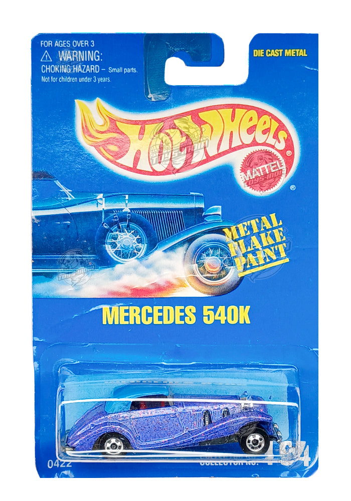 EXCLUSIVES Hot Wheels Metal Flake Paint Mercedes 540K - Blue - 1991 Card (Creased Card / Car in Excellent Condition) (With Protector Case)