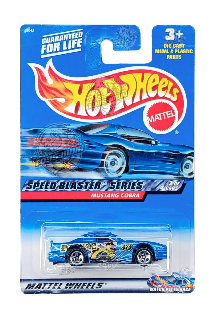 EXCLUSIVES Hot Wheels Mustang Cobra - Blue - 1999 Card (With Protector Case)