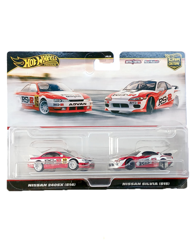 EXCLUSIVES Hot Wheels Nissan 240SX (S14) & Nissan Silvia (S15) - Red / White - 2024 Box (2 Pack)