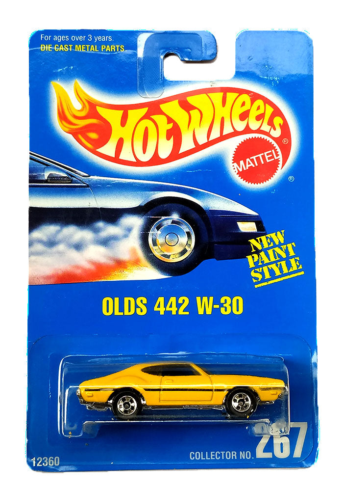 EXCLUSIVES Hot Wheels OLDS 442 W-30 - Yellow - 1991 Card (With Protector Case)