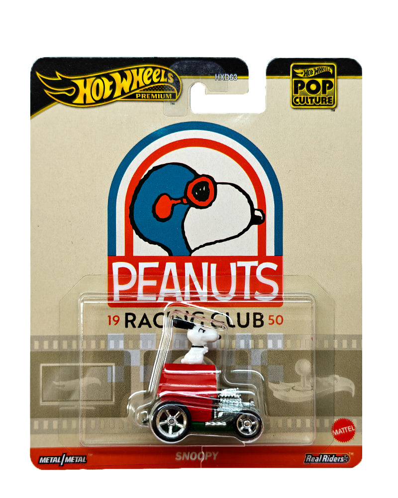 EXCLUSIVES Hot Wheels Peanuts Racing Club Snoopy - Red / Green - 2023 Card (With Protector Case)