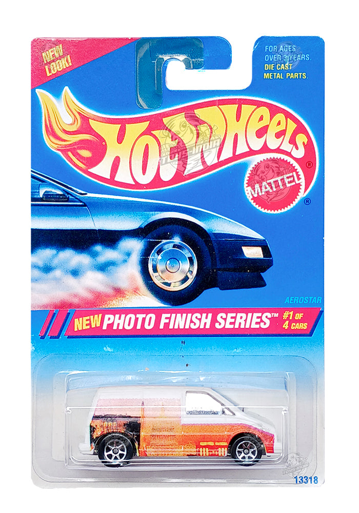 EXCLUSIVES Hot Wheels Photo Finish Series Aerostar - White / Orange - 1994 Card (With Protector Case)