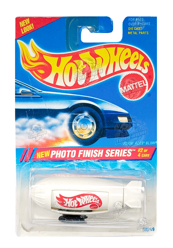 EXCLUSIVES Hot Wheels Photo Finish Series Flyin' Aces Blimp - White / Red - 1994 Card (Blister Damage / Car in Excellent Condition) (With Protector Case)
