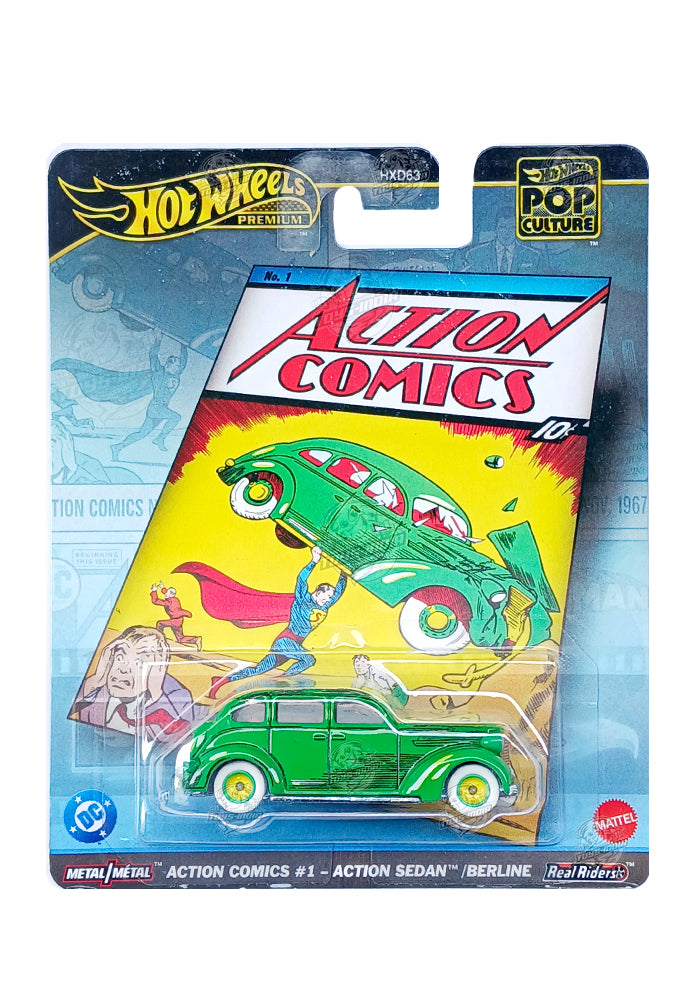 EXCLUSIVES Hot Wheels Premium Action Comics Action Sedan Berline - Green - 2025 Card (With Protector Case)