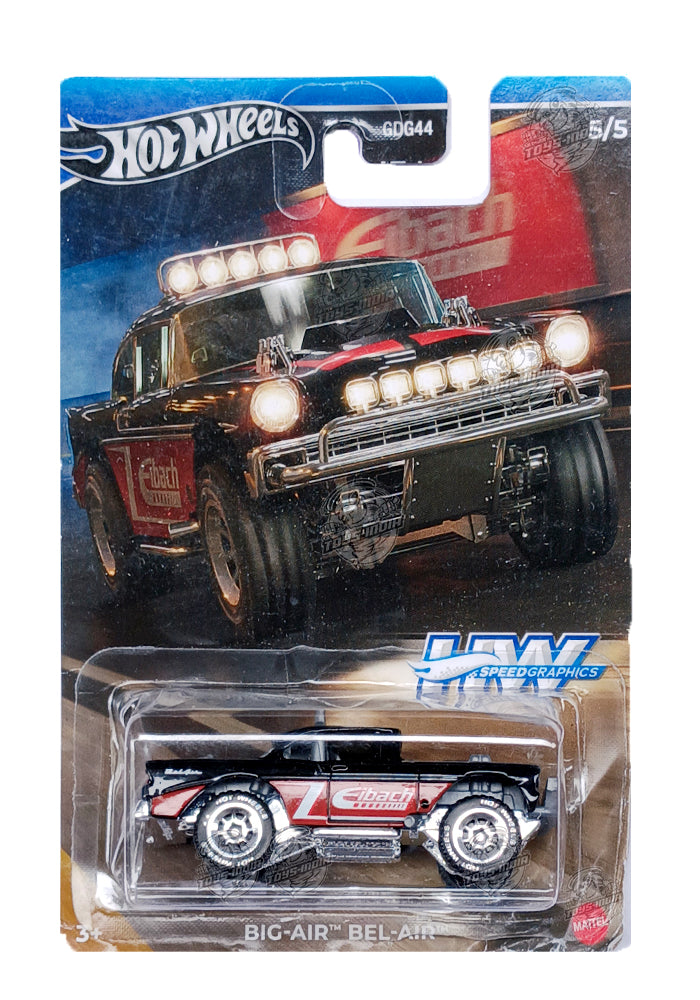 EXCLUSIVES Hot Wheels Premium Eibach Big-Air Bel-Air - Black / Brown - 2023 Card (Creased Card / Car in Excellent Condition) (With Protector Case)