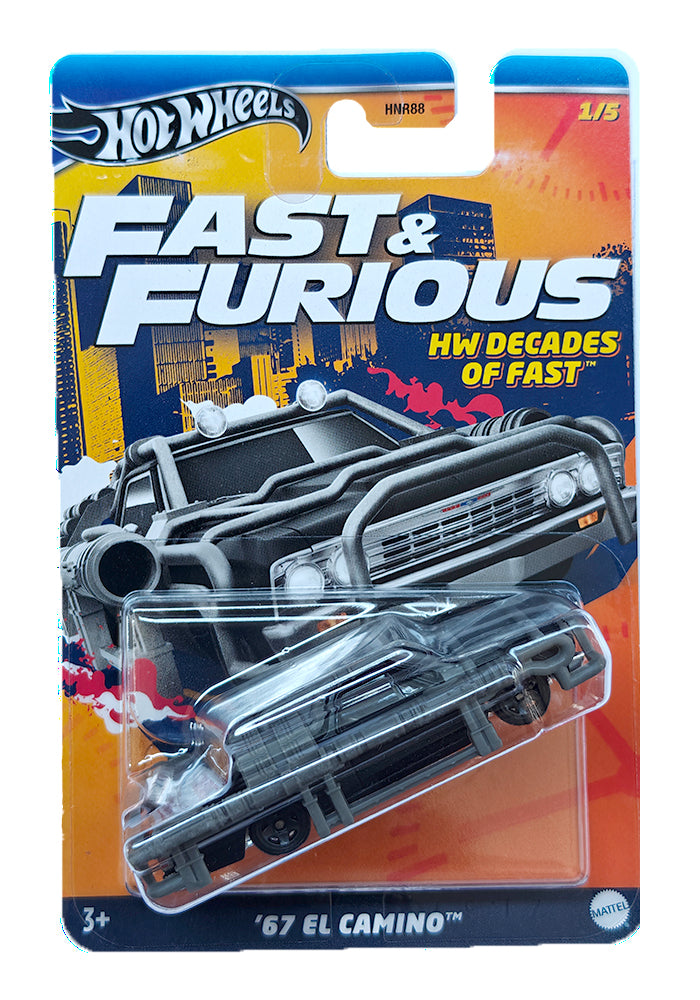 EXCLUSIVES Hot Wheels Premium Fast & Furious Decades Of Fast '67 El Camino - Grey / Black - 2023 Card (With Protector Case)