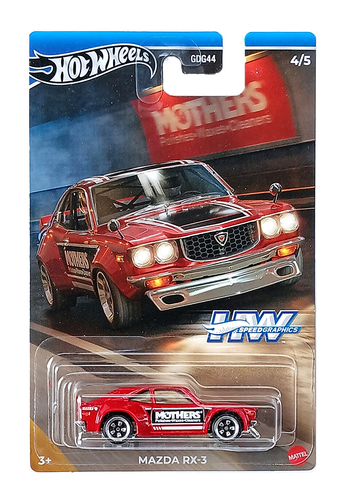 EXCLUSIVES Hot Wheels Premium Mothers Mazda RX-3 - Red - 2023 Card (With Protector Case)