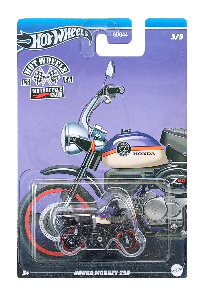 EXCLUSIVES Hot Wheels Premium Motorcycle Club Honda Monkey Z50 - Black / Red - 2023 Card (With Protector Case)