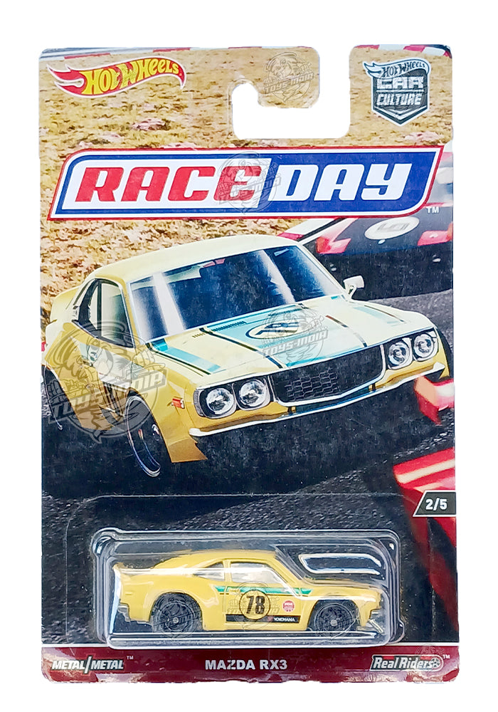 EXCLUSIVES Hot Wheels Premium Race Day Collection Mazda RX3 - Yellow - 2016 Card (With Protector Case)