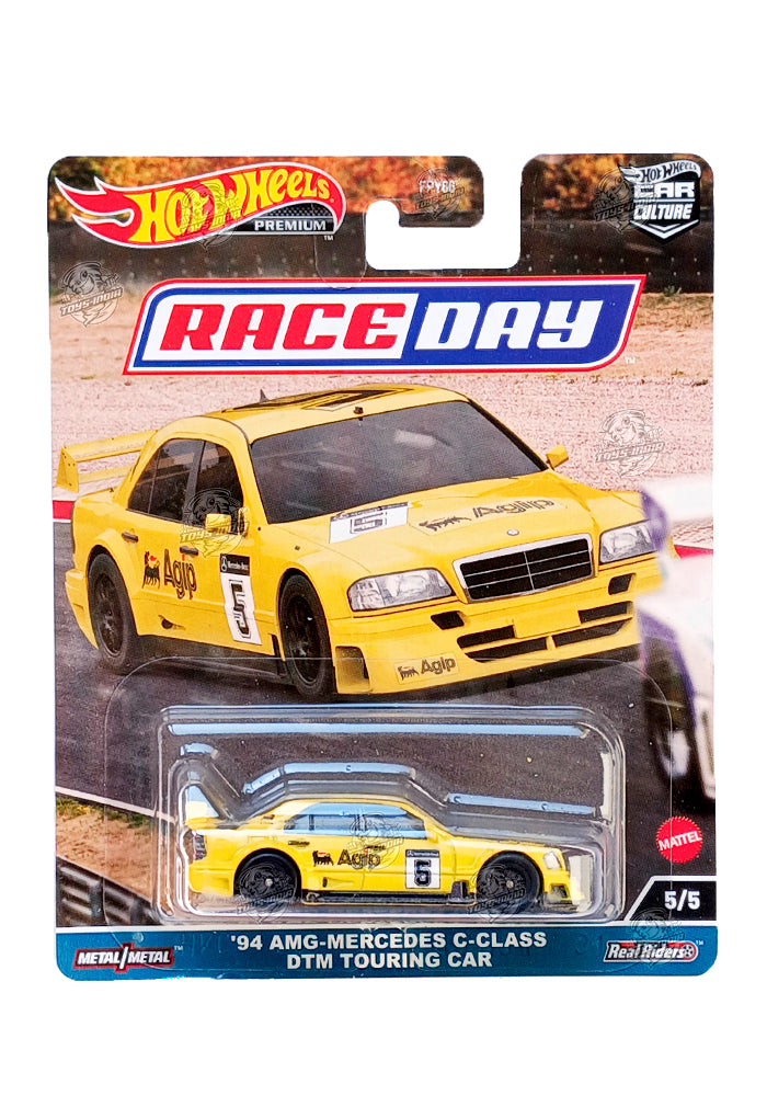 EXCLUSIVES Hot Wheels Race Day Collection '94 AMG-Mercedes C-Class DTM Touring Car Card - Yellow - 2022 Card