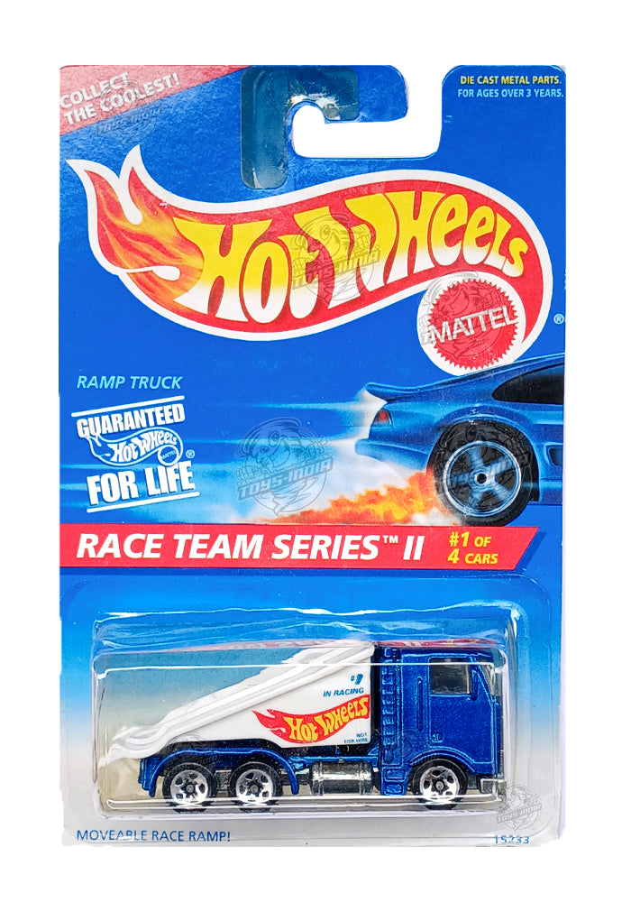 EXCLUSIVES Hot Wheels Race Team Series II Ramp Truck - Blue / White - 1995 Card (With Protector Case)