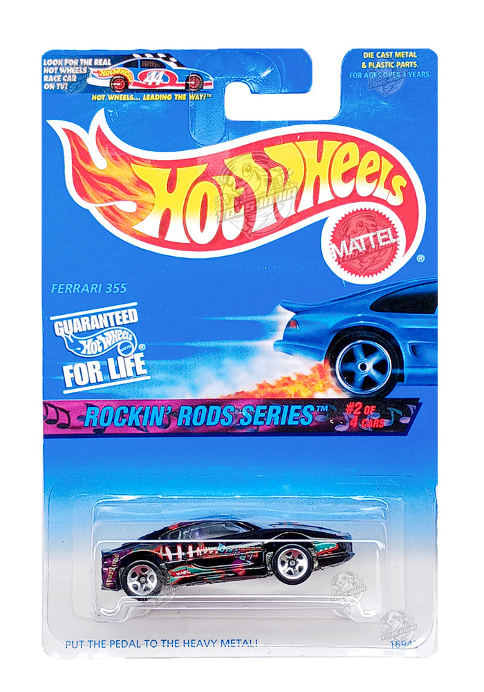 EXCLUSIVES Hot Wheels Rockin' Rods Series Ferrari 355 - Black - 1996 Card (With Protector Case)