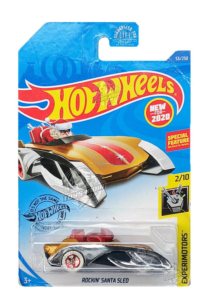 EXCLUSIVES Hot Wheels Rockin' Santa Sled - Silver / Yellow - 2017 Card (Creased Card / Car in Excellent Condition) (With Protector Case)