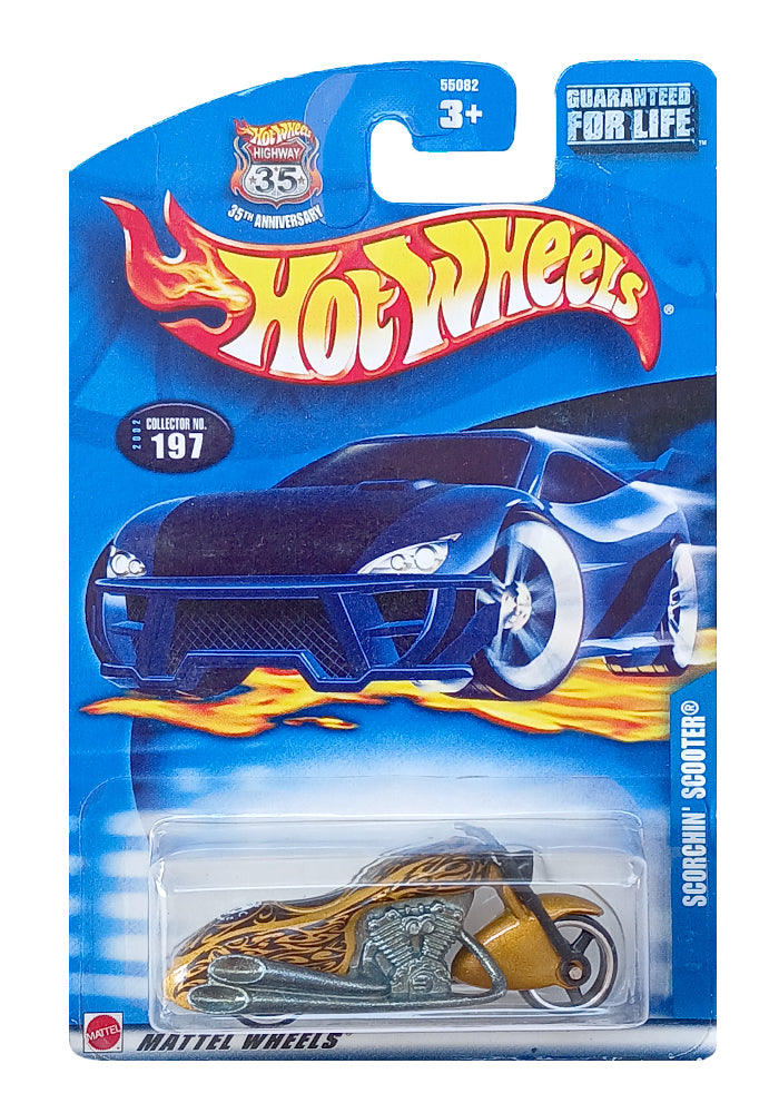 EXCLUSIVES Hot Wheels Scorchin' Scooter - Dark Yellow - 2002 Card (With Protector Case)
