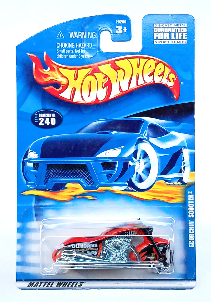 EXCLUSIVES Hot Wheels Scorchin' Scooter - Orange / Silver - 2000 Card (With Protector Case)