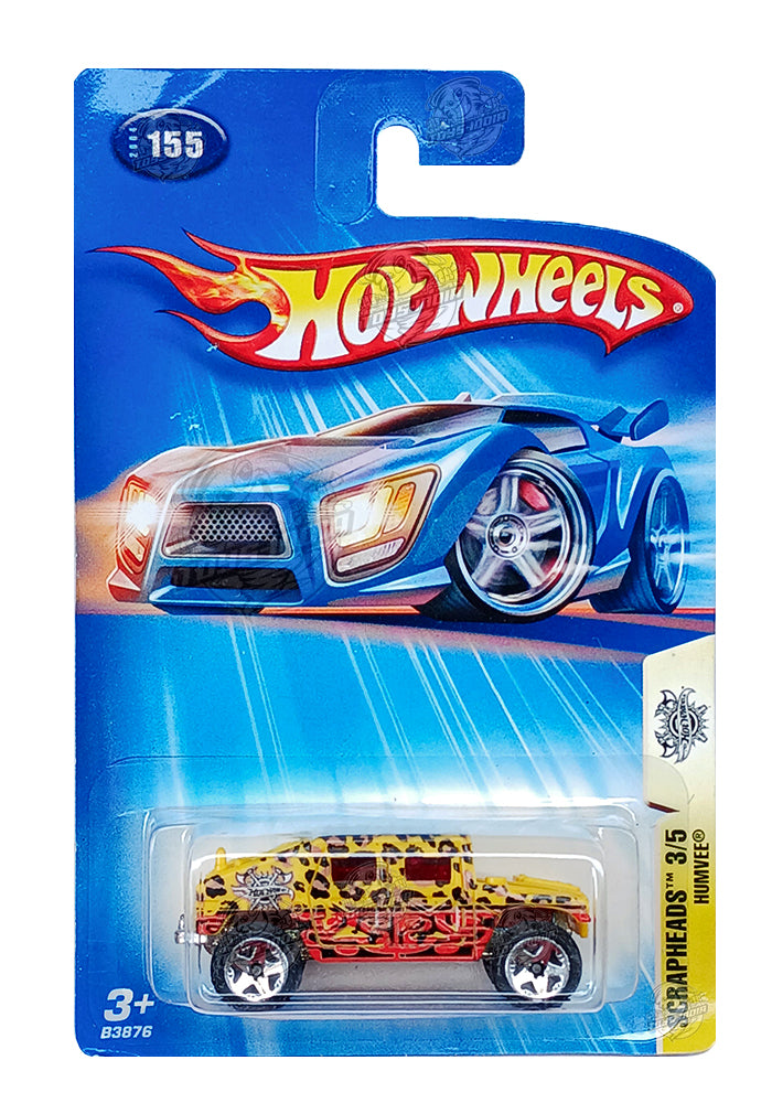 EXCLUSIVES Hot Wheels Scrapheads Humvee - Yellow / Red - 2004 Card (With Protector Case)