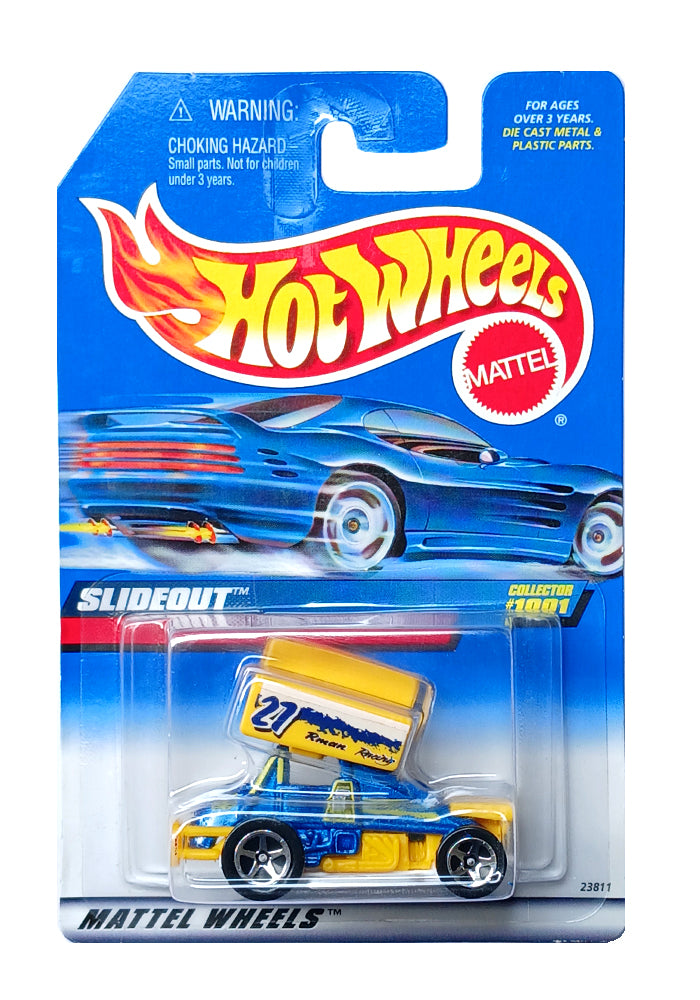 EXCLUSIVES Hot Wheels Slideout - Blue / Yellow - 1997 Card (With Protector Case)