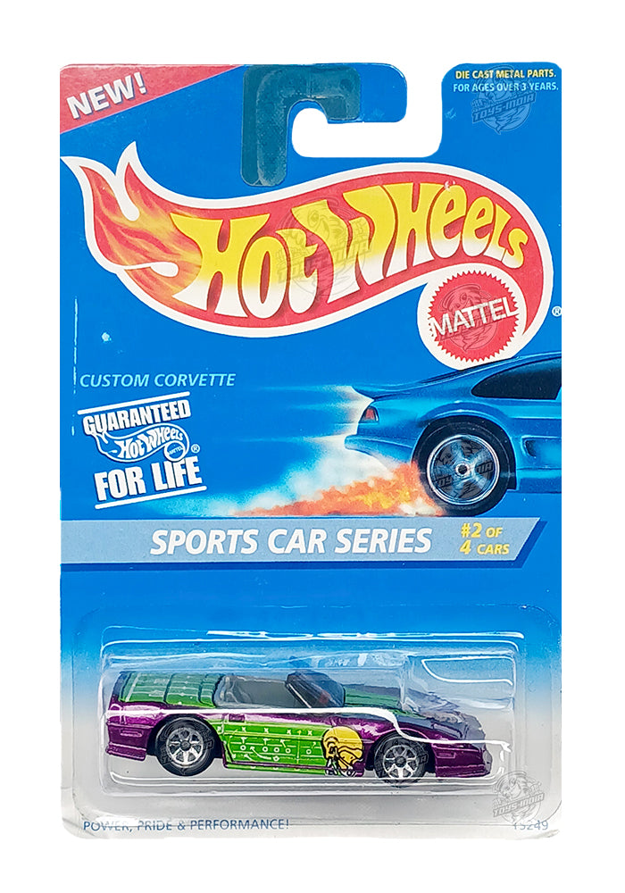 EXCLUSIVES Hot Wheels Sports Car Series Custom Corvette - Purple / Green - 1995 Card (With Protector Case)