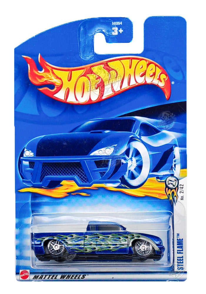 EXCLUSIVES Hot Wheels Steel Flame - Blue / Green - 2000 Card (With Protector Case)