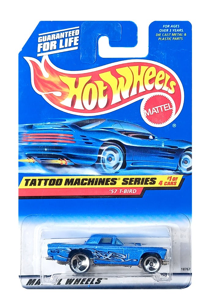 EXCLUSIVES Hot Wheels Tattoo Machine Series '57 T-Bird - Blue - 1997 Card (With Protector Case)