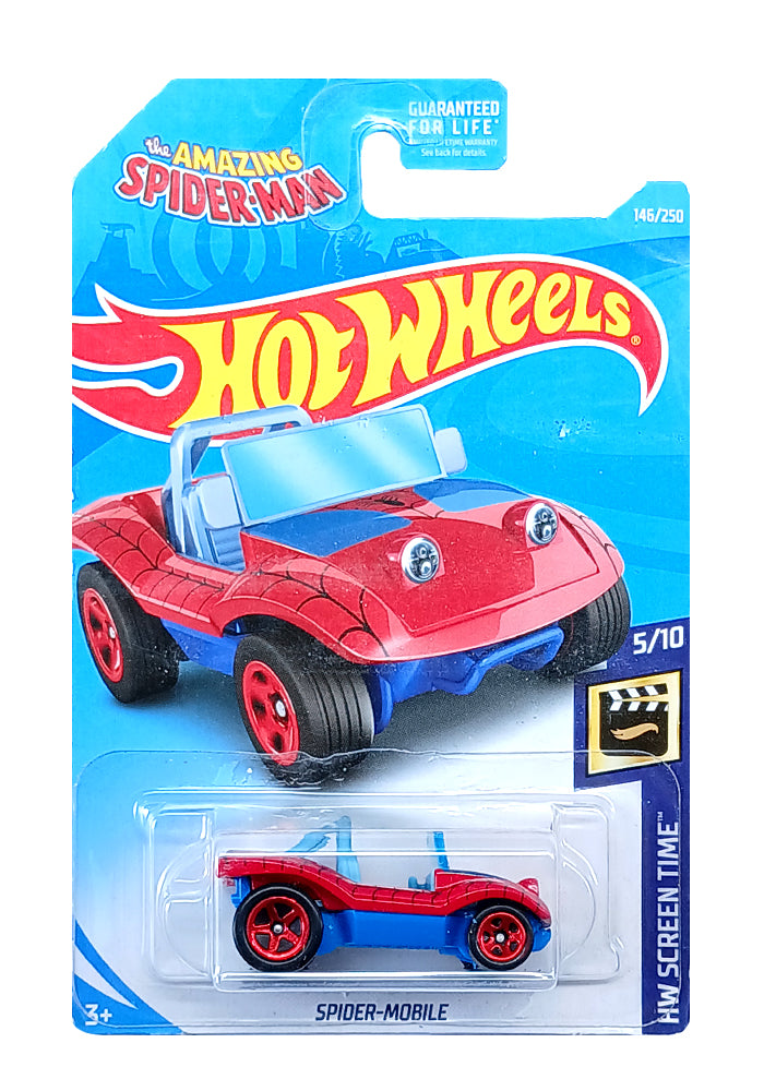 EXCLUSIVES Hot Wheels The Amazing Spider Man Spider Mobile - Red / Blue - 2017 Card (With Protector Case)
