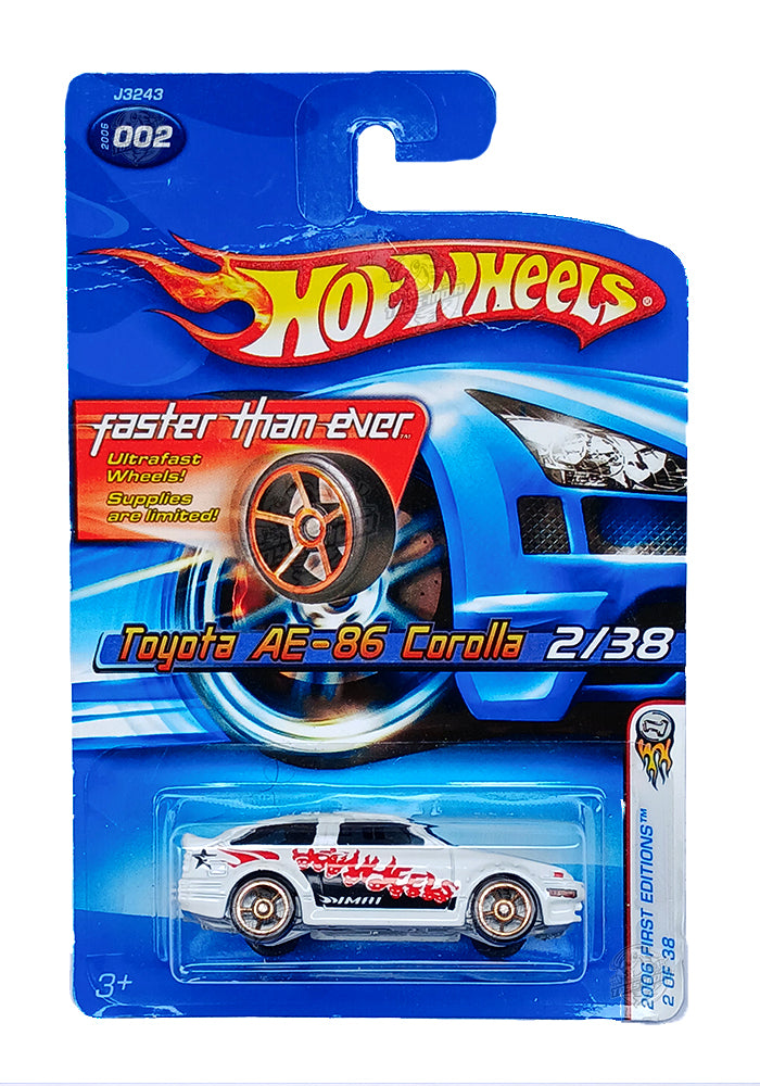 EXCLUSIVES Hot Wheels Toyota AE-86 Corolla - White / Black - 2005 Card (Creased Card / Car in Excellent Condition) (With Protector Case)