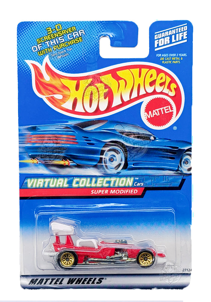 EXCLUSIVES Hot Wheels Virtual Collection Super Modified - Red / White - 1999 Card (With Protector Case)