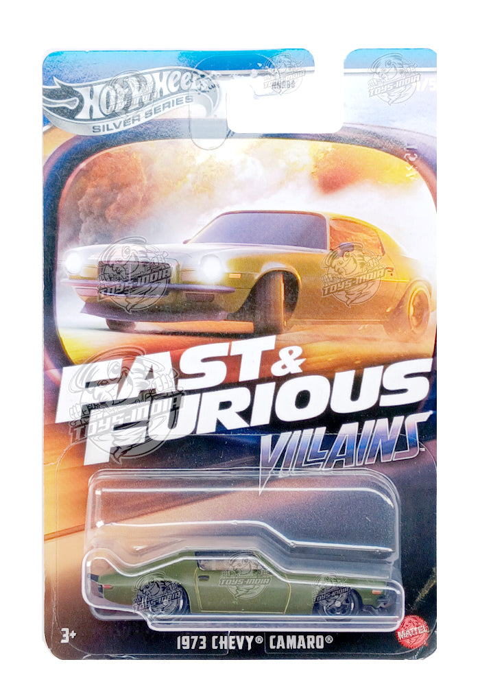 EXCLUSIVES Hot Wheels Premium Fast & Furious Villains 1973 Chevy Camaro - Green / Black - 2024 Card (With Protector Case)