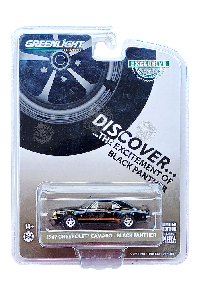 EXCLUSIVES Greenlight Collectibles 1967 Chevrolet Camaro - Black Panther - Black (Scale 1:64)