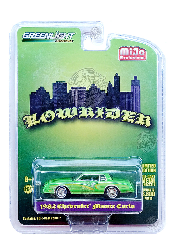 EXCLUSIVES Greenlight Collectibles Lowrider 1982 Chevrolet Monte Carlo - Green (Scale 1:64)