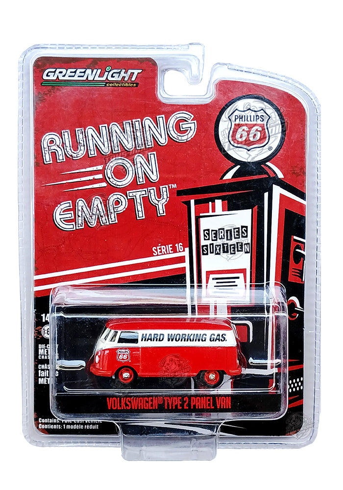EXCLUSIVES Greenlight Collectibles Running On Empty Volkswagen Type 2 Panel Van - Red / White (Scale 1:64)